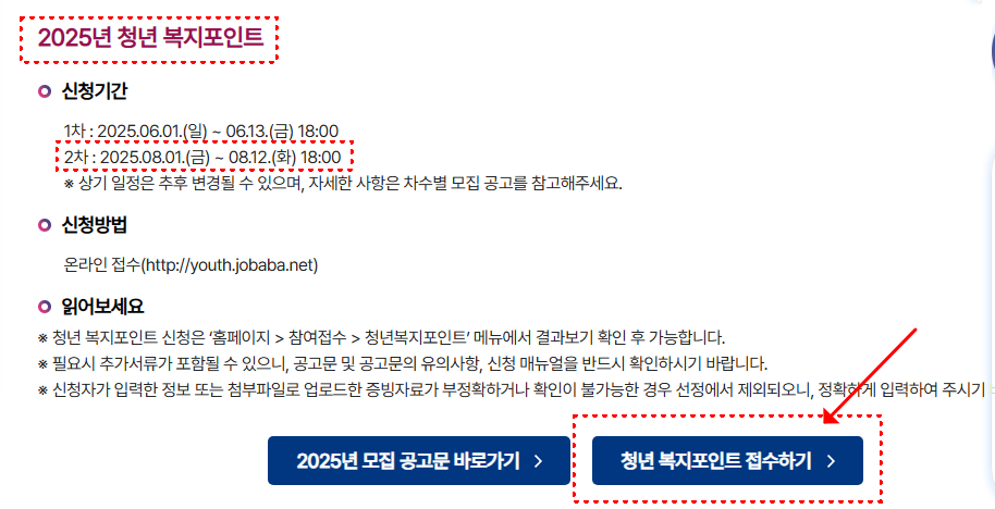 경기도 청년복지포인트 신청은 2025년 8월 1일 오전 9시부터 8월 12일 오후 6시까지 경기도 청년 노동자 지원사업 전용 누리집인 youth.jobaba.net을 통해 온라인으로 진행됩니다.