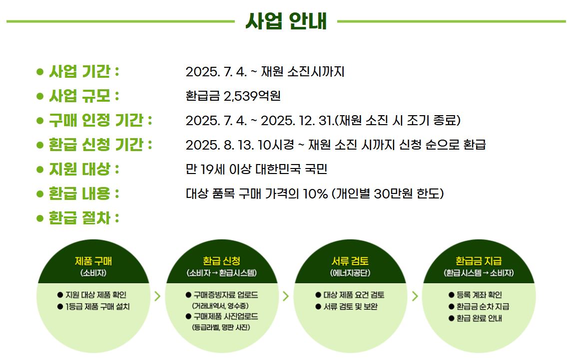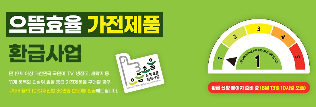 제품 교체를 계획하고 있다면 이번 기회를 활용해 환급 혜택을 누리는 동시에 에너지 절약과 환경 보호에 기여하는 소비를 실천해보시기 바랍니다.