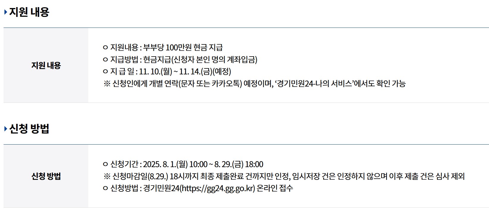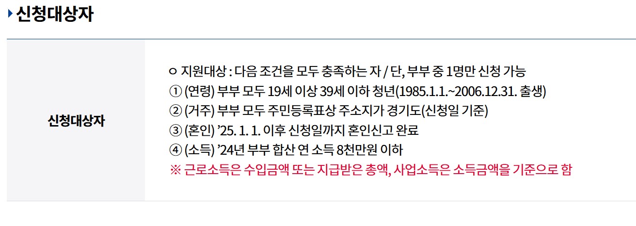 신청일 기준 부부 모두 주민등록상 주소지가 경기도에 있어야 합니다.