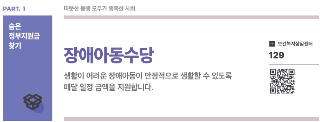 장애아동수당은 장애로 인해 추가적인 양육비가 발생하는 가정의 부담을 덜어주기 위해 마련된 복지제도이다. 만 18세 미만의 등록장애인이면서 소득 인정액이 기준 중위소득 50% 이하인 경우 지원을 받을 수 있다.
