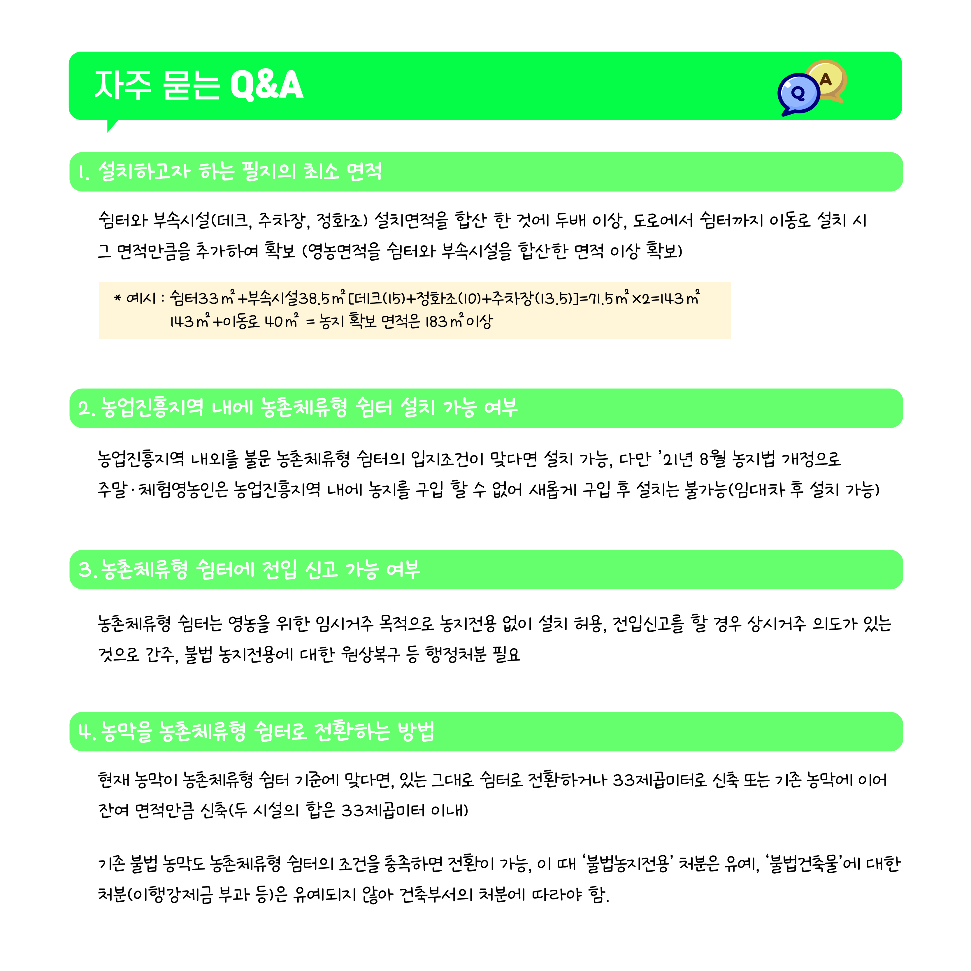 농촌 체류형 쉼터 조건