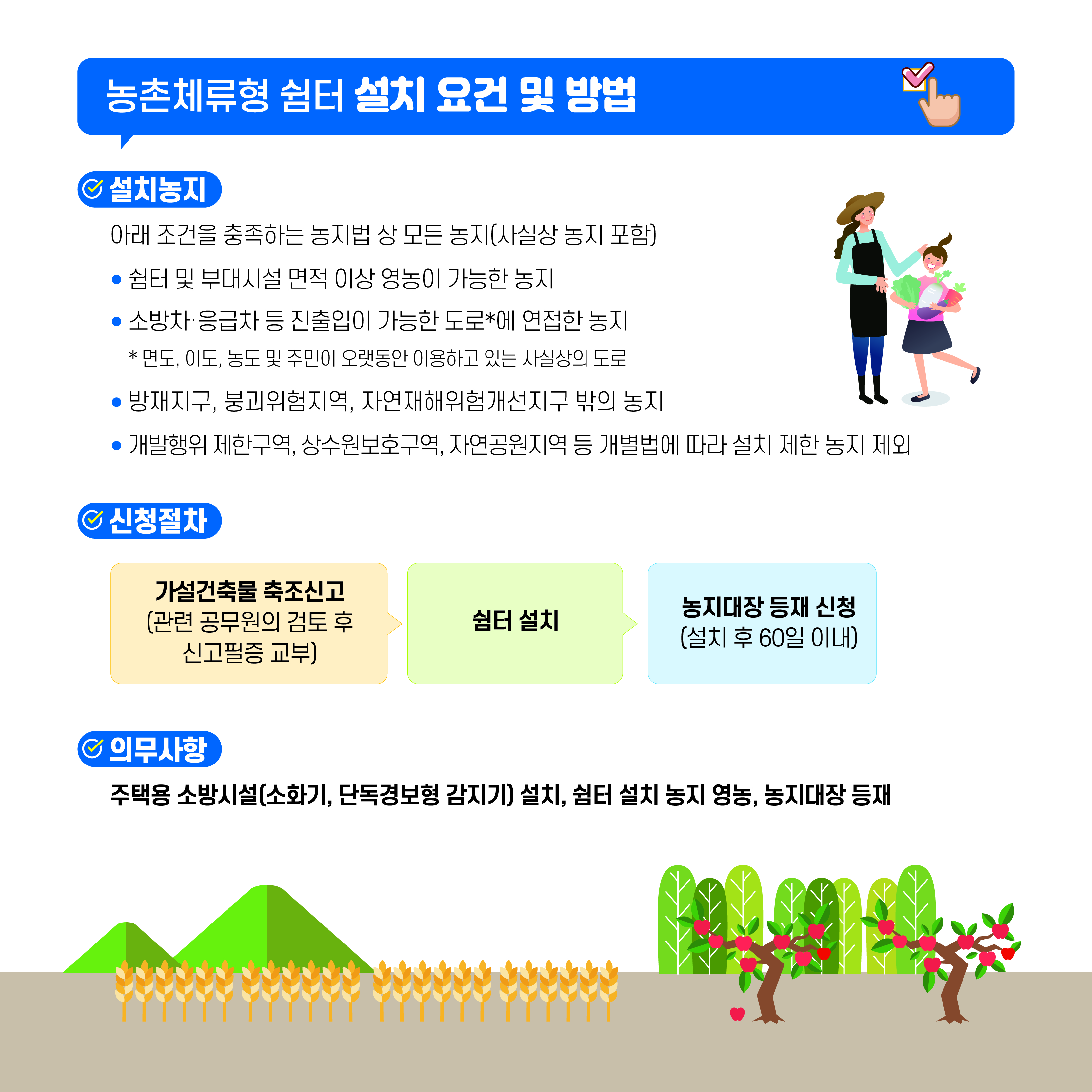 농지대장 등록: 체류형쉼터는 농지대장에 등재해야 합니다