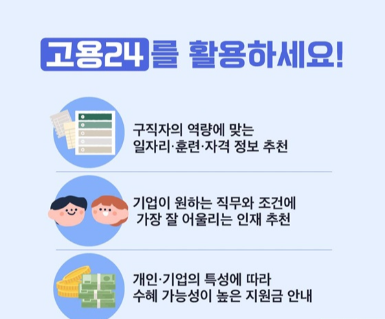앞으로 고용24는 더 많은 기능을 추가해 국민이 체감할 수 있는 실질적인 고용 지원 플랫폼으로 발전할 예정입니다. 취업을 준비하는 청년, 경력 전환을 고민하는 중장년, 새로운 인재를 찾는 기업 모두가 24시간 언제든 활용할 수 있는 온라인 고용센터, 그 것이 바로 고용24입니다.