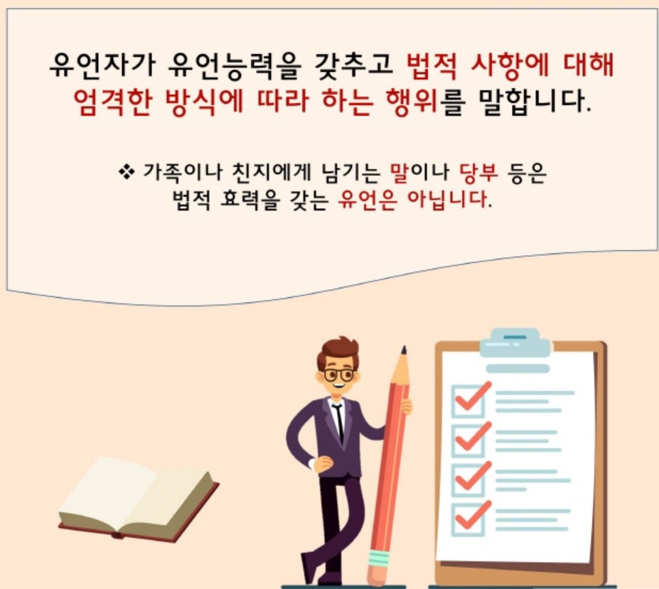 그러나 단순히 종이에 글을 남겼다고 해서 효력이 발생하는 것은 아니다. 민법에서 정한 요건과 절차를 충족해야만 법적으로 인정된다.