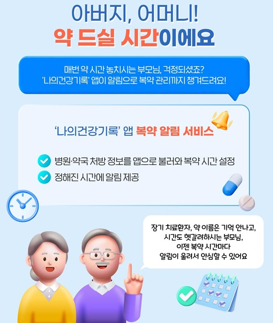 가족이 대신 앱을 설치하고 알림을 설정해두면, 부모님의 건강을 원격으로도 챙길 수 있어 보호자 입장에서도 안심할 수 있습니다.